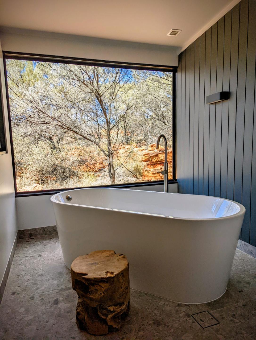 This was a full wet room bathroom upgrade, with stone floors and a wall to wall window.